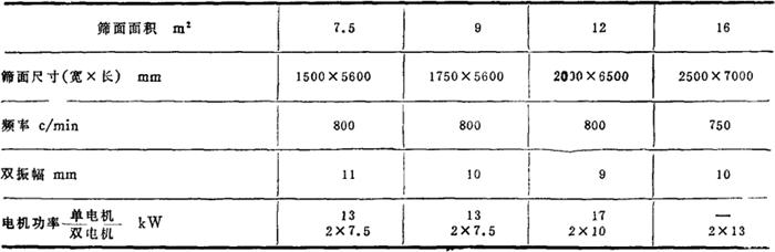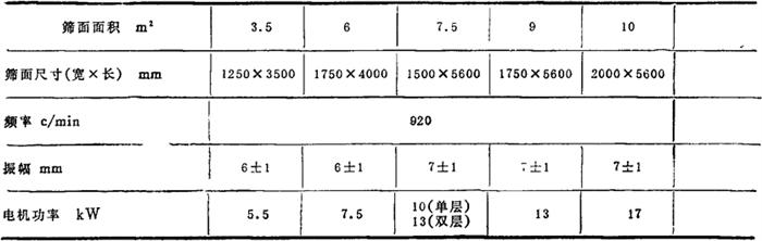 表4-3-7 双轴振动筛基本参数