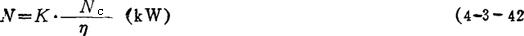 式中 Q——生产能力(t/h) L——分级机机身长(m) β——机身倾角(度) ω——阻力系数,取2.5 Nc——理论功率(kW) 若考虑功率备用系数,则实际功率为: