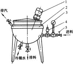 1-搅拌器 2-锅体 3-压力表 4-安全阀 5-进料阀