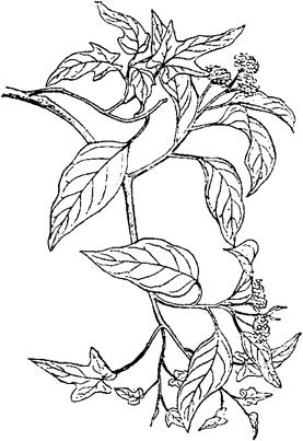 图2-50 常春藤 (1)植物学特征。常春藤,五加科,常春藤属,为常绿藤本植物。茎上气生根居多,而密生。叶革质,深绿色,呈三角形状,花小淡绿色,有微香味。花期9~11月。 (2)对环境与土壤的要求。常春藤喜凉爽、湿润、通风的环境。耐寒、极耐阴。好生于疏松肥沃的土壤。在中性砂质土壤中也能生长。 (3)施肥技术。栽植于肥沃土壤中,则要少施肥或不施肥。①生长期内应每月追施以氮为主的薄肥1~2次。即可枝叶郁葱,花多香浓。②盆栽时带泥团。 |