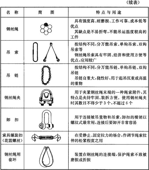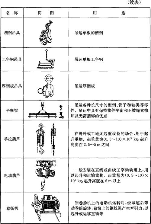 表5-8 常用吊具