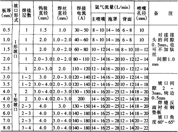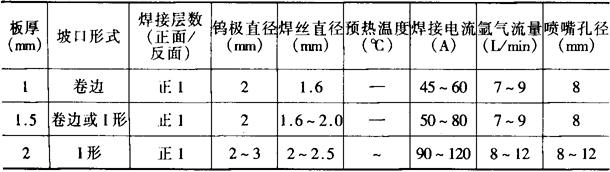表5-10 不锈钢薄板手工钨极氩弧焊规范