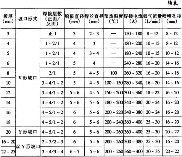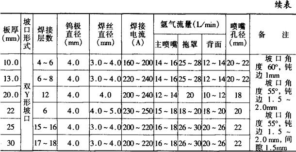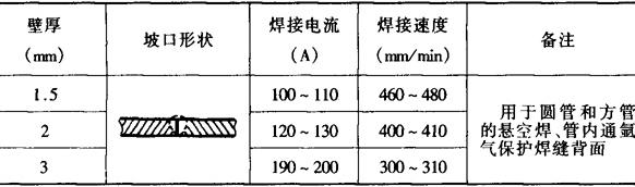 注:直流正接。 表5-14 不锈钢厚壁管多层焊时打底焊缝工艺参数