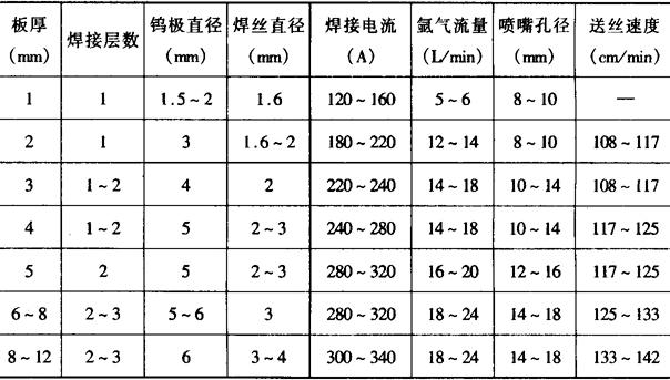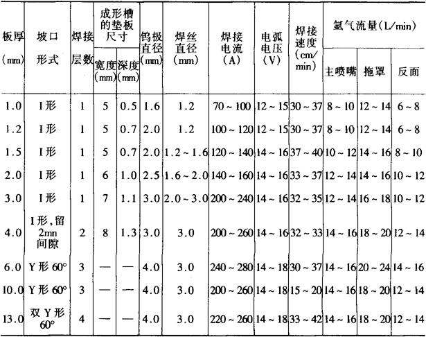表5-12 钛及钛合金自动钨极氩弧焊(直流正接、对接)规范