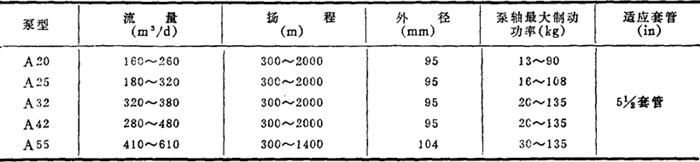 注:①1hp=735.499W 表3-3-60 毕节公司沉没泵系列表