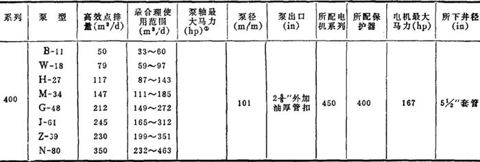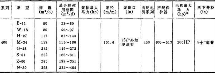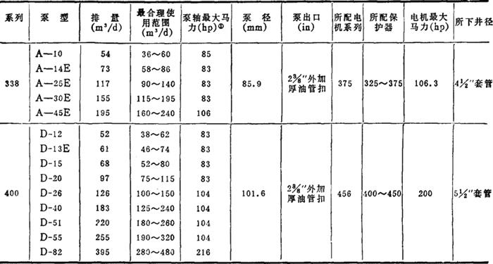 注:①1hp=735.499W 表3-3-61 森垂立夫特(Centrilift)公司沉没泵系列表