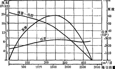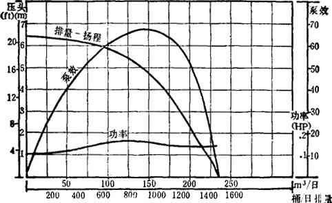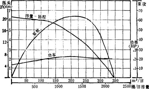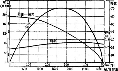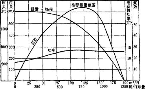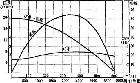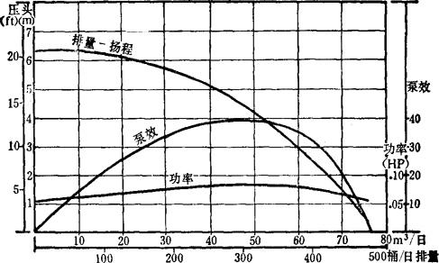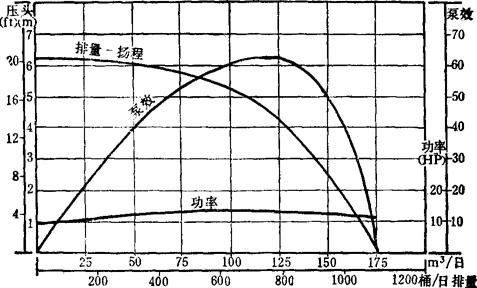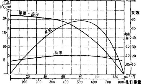 图3-3-107 95系列A20型沉没泵单级特性曲线 注(1)转速2820r/min,相对密度1.0 (2)1HP=735.499W