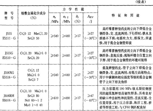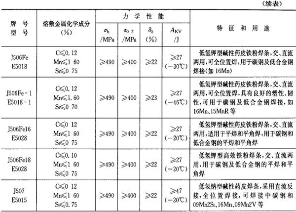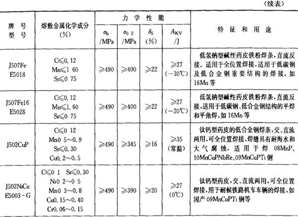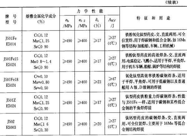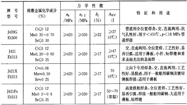 | 字词 | 常用焊条牌号、型号、特性和用途 |