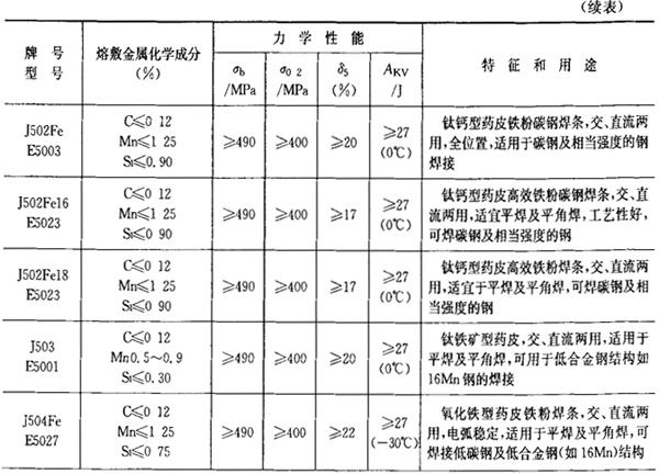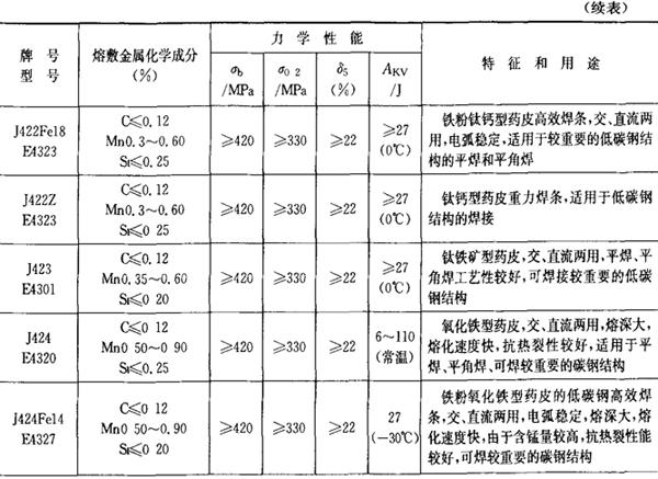 | 释义 | 常用焊条牌号、型号、特性和用途 1.结构钢焊条 结构钢焊条的成分、性能和用途列于表2.1-21。 表2.1-21 结构钢焊条