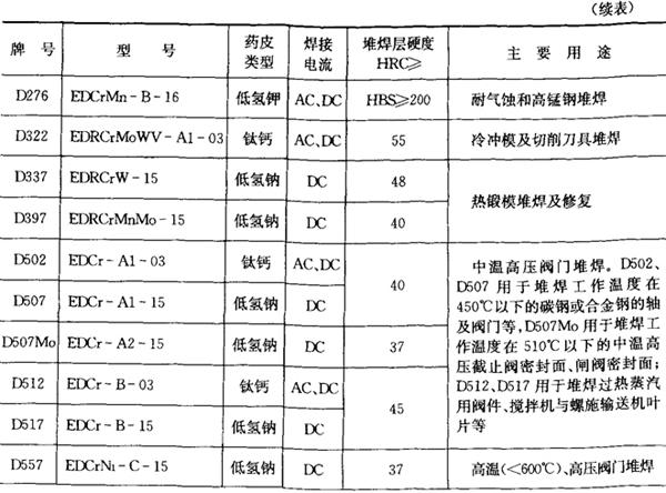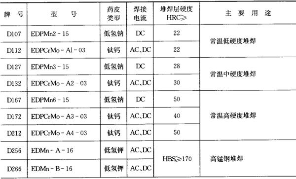4.堆焊焊条 堆焊焊条的成分、性能和用途列于表2.1-25。 表2.1-25 常用堆焊焊条