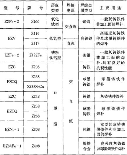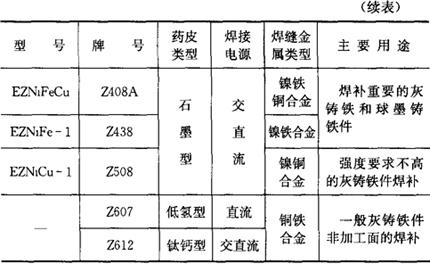 5.铸铁焊条 铸铁焊条型号、牌号和用途列于表2.1-26。 表2.1-26 铸铁焊条