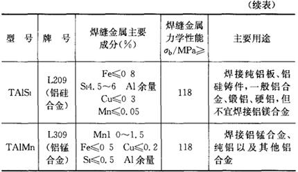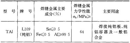 注:铝及铝合金焊条药皮均为盐基型、焊接电源均为直流。 |