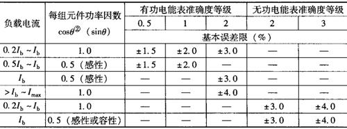 注:①Ib-标定电流,Imax-额定最大电流。 ②周期检定时允许将cosφ=0.8改成cosφ=0.866,角φ是指相电压与相电流间的相位差。 ③适用于使用中的无功电能表。 表7-5 不平衡负载①时安装式三相有功和无功电能表的基本误差限