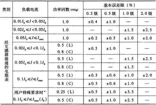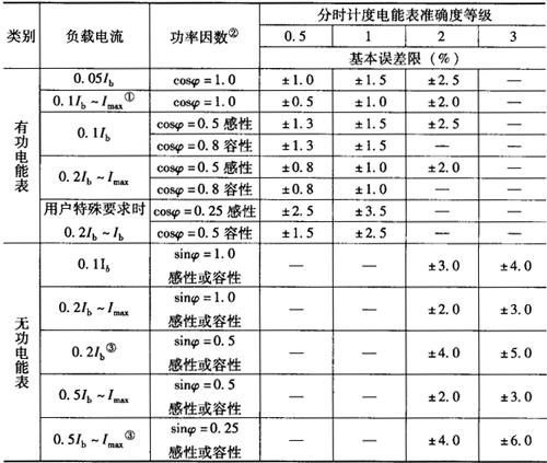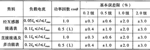 | 释义 | 常用电能表的技术要求 通常用的普通电能表有三种:感应式交流电能表,电子式电能表,复费率电能表。 1.感应式交流电能表 (1)标志:每只电能表上的标志应符合国家标准或有关技术条件的规定。 (2)基本误差: ①安装式有功和无功电能表的基本误差限不得超过表7-4和表7-5规定。 表7-4 单相电能表和平衡负载时三相电能表的基本误差限