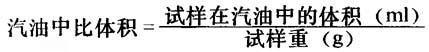 ⑦体积电阻率 用硫酸钠溶液滴定之。 1ml硫代硫酸钠相当于0.0333gCrO3。 ⑧汽油中比体积 称取试样1g(精确到0.1g)置于带磨口塞的量筒中,然后将汽油注入,盖紧用力摇动3min,使样品沉于底部,然后把量筒放在平桌上,15min后读数试样在汽油中的体积。