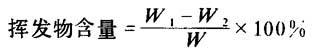 ⑨挥发物含量 称取试样约2g置于灼烧恒重的瓷坩埚中,然后将此坩埚放入较大的坩埚中(以便夹取),再放于800℃的高温炉内灼烧15min,取出坩埚(不要打开盖子)稍冷后置于保温干燥器中,冷却后称重。 计算: