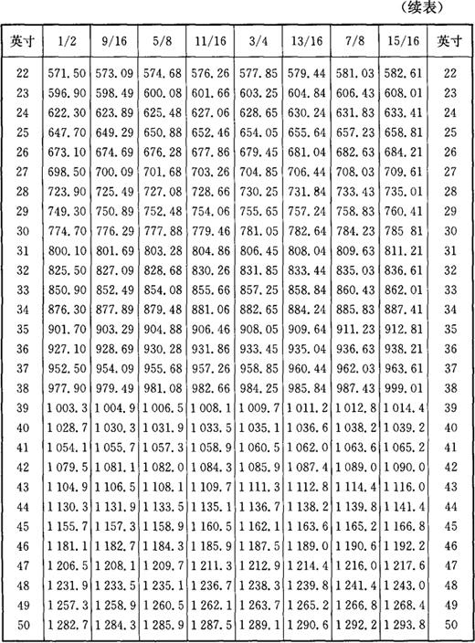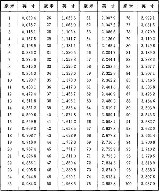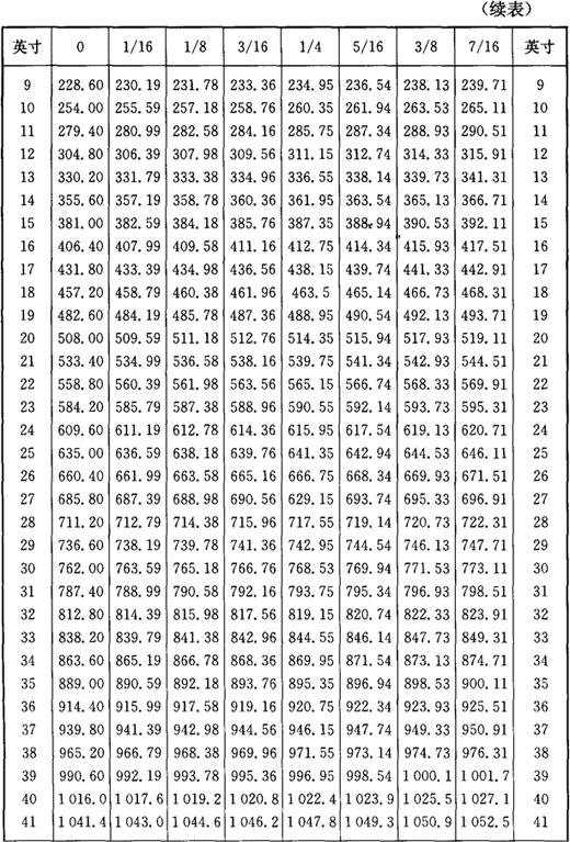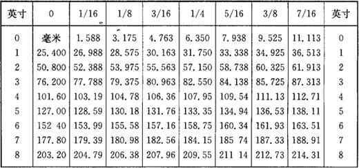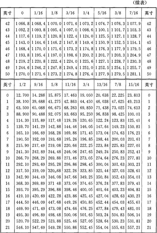 3.英寸与毫米对照 英寸与毫米对照见表1-14。 表1-14 英寸与毫米对照表