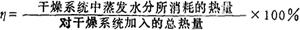 图16-9 干燥过程的热量计算 图16-9中,温度为t0、湿度为H0和焓为I0的新鲜空气,经预热送入干燥器;t1,H1,I1为预热后的状况;t2,H2和I2为空气离开干燥器的状况;绝干空气流量为L(kg/s);X1,X2为物料进出口干燥器时的干基含水量;θ1,θ2为其温度;I1′,I2′为焓;绝干物料的质量流量为Gc(kg/s);QP为预热器传热速率(kW);QD为干燥器中补充热量的速率(kW);QL为干燥器损失的速率(kW)。 干燥过程热量衡算的基本关系式 LIu+GCI1′+QP+QD=LI2+GCI2′+QL Q=QP+QD=L(I2-I0)+Gc(I2′-I1′)十OL 式中符号见图16-9。 3.干燥器的热效率