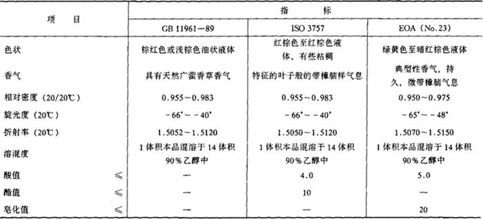| 释义 | 广藿香油 别名 派超力油 编码 GB N007;FEMA 2838 主要成分 藿香醇、乙位和甲位广藿香烯、石竹烯、a-愈创木酚、δ-愈创木烯等。 性状 具有天然广藿香草香气,棕红色或浅棕色油状液体。易溶于苯甲酸苄酯、邻苯二甲酸二乙酯、植物油和矿物油,部分溶于丙二醇,不溶于甘油,有挥发性。 制法 用水蒸气蒸馏法从广藿香草(Pogostemon cablin Benth)的茎、叶中获得精油。 质量标准