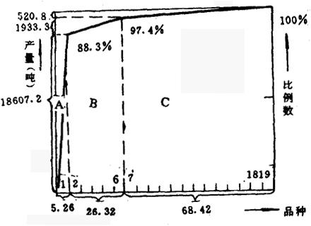 图1 不锈钢品种一产量ABC分析图
