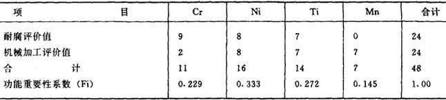 表4 1Cr18Ni9Ti功能重要性评价(“04”打分)