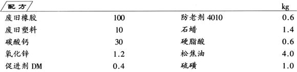 制法 先将废旧橡胶粉碎成胶粉,室温下,放在辊距为3mm的炼胶机上,边炼边加入松焦油,使其混合均匀,然后将胶粉混合物装入脱硫罐,通入蒸汽,加压脱硫7h,再经塑炼成厚片备用。 将洗净、晾干的废旧塑料,在辊温110~115℃的炼胶机上塑炼3~5min。降温至50~55℃后加入上述再生胶片,混炼10min,压成厚片,同时依次加入促进剂DM、防老剂4010、碳酸钙、氧化锌、石蜡、硬脂酸、硫磺,混炼15min,出片。停放24h后,当胶片温度达40℃时,送入三辊压延机上压成宽1m、厚1.5mm,长20m一卷的卷材,最后在(142±1)℃条件下,硫化反应10min,即成废旧橡胶防水卷材。 |