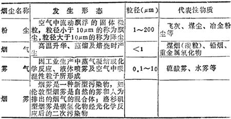 (2)含硫化合物。二氧化硫、三氧化硫、硫化氢、硫醇等。 (3)含氮化合物。一氧化氮、二氧化氮、氨等。 (4)氧化物。一氧化碳、臭氧、过氧化氢等。 (5)有机物。烃类、甲醛、有机酸、氟里昂、酮类、稠环致癌物等。 以各类污染物按其物理性质又可分为颗粒物和气态污染物两大类。气态污染物是以分子形式分散于大气中,粒径约为10-4μm,如SO2,CO等。废气中颗粒物包括固态或液态的尘粒,以多分子的结合态存在,其粒径范围为10-3~103μm,如粉尘、雾粒等。应该注意的是,多数污染源排放的废气,无论从化学组成还是物理形态上看都是一个混合体系,即含有各种有害物(烟尘、硫氧化物、氮氧化物、有机物等)并以气体、颗粒物等各种形态存在。 |