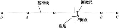 | 释义 | 建筑物及深基坑水平位移测量 进行深基坑及建筑物主体的水平位移监测时,可根据施工现场的地形条件,一般选用基准线法、视准线小角法、变形监测点设站法、导线法和前方交会法等方法。 实施水平位移监测工作,首先应建立高精度的变形监测平面控制网,其基准点通常埋设在稳定的基岩上或基坑及建筑物变形影响范围之外且能长期保存的地方,同时还应布设工作点(是基准点与变形监测点之间的联系点)。工作点与基准点构成变形监测的首级网,用来测量工作点相对于基准点的变形量,由于该变形量一般较小,因此要求进行高精度监测。其次,应在监测对象上埋设变形监测点,与监测对象构成一个整体。变形监测点与工作点构成变形监测的次级网,该网用来测量变形监测点相对于工作点的变形量。水平位移同沉降监测一样,也必须进行周期性的监测工作。一般来说,首级网的复测间隔时间长,但次级网复测间隔时间短,因为后者的变形量较大,经常对变形监测点进行监测,便可依据其坐标的变化量,反映出基坑或建筑物主体的空间位置的变化。 1.基准线法 在基坑开挖或打桩过程中,常常需要对施工区周边进行水平位移监测。基准线法的原理是在与水平位移相垂直的方向上建立一个固定不动的铅垂面,测定各变形监测点相对于该铅垂面的距离变化,从而求得水平位移量。 进行深基坑监测,如图10-54所示,可在支护结构的锁口梁轴线两端基坑的外侧分别设立两个稳定的工作点A和B,两工作点的连线即为基准线方向。锁口梁上的变形监测点应埋设在基准线的铅垂面上,偏离的距离不大于2cm。监测点标志可埋设16~18mm的钢筋头,顶部锉平后,划上“十”字标志,一般每8~10m设置一个变形监测点。监测时,将精密经纬仪安置于一端工作点A上,瞄准另一端工作点B(即后视点),此视线方向即为基准线方向。通过量测监测点P偏离视线的距离,即可得到监测点水平位移偏距,通过两次偏距的比较来发现该点的水平位移量。