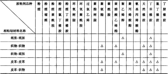 表19-20(3) 按相粘结材料不同选用胶粘剂参考表