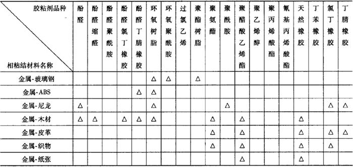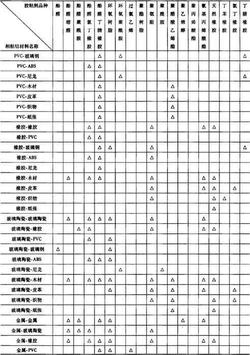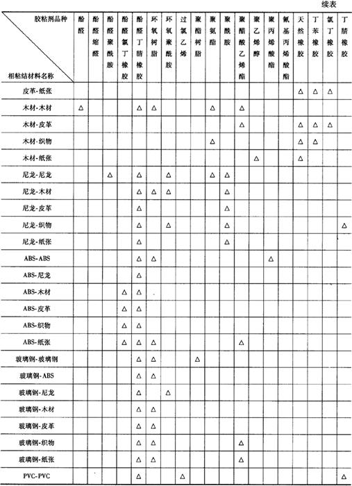表19-20(2) 按相粘结材料不同选用胶粘剂参考表