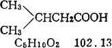 以异戊醇(分馏杂醇油所得)为原料,先在银网催化剂上气相氧化至异戊醛,异戊醛再在锰盐存在下液相氧化至异戊酸;或者异戊醇以硝酸氧化制出异戊酸。 性质 无色至微黄色透明液体,具有强烈而不愉快臭气;沸程173~178℃≥90%,含酸量≥95%,相对密度(15°C)0.9308,折光指数(15℃)1.4064。 用途 适量用于配制食用香精;主要作为香料原料,有机中间体。 |