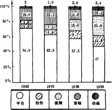 | 释义 | 引言 多媒体计算机技术是一门综合的高新技术。20年前,人们曾把几张幻灯片配上同步的声音,称为多媒体。今天,微电子、计算机、通信和数字化声像技术的发展,给多媒体技术赋予了新的内容。特别是进入90年代以来,信息技术迅猛拓展,高清晰度电视(HDTV)、高保真音响(Hi Fi)、高性能的录像机、高速通信和智能化计算机技术融合为一体,技术又前进了一大步。目前,世界各发达国家都把多媒体计算机技术列入高新技术开发计划,投入大量的人力、物力;很多专家、学者和工程技术人员从不同领域分别转入和瞄准多媒体技术开发研究。世界各大计算机公司、通信和电器公司都宣称要开发多媒体产品,制定发展多媒体的战略和措施。很多公司为了占领未来的市场,现在就在联合制定多媒体有关的标准和规范。 全世界已形成一股开发多媒体技术及应用的热潮,多媒体成了计算机及其应用领域人们最时髦的术语。在世界各地,学术会、博览会、展览会上通过广告、演示、产品介绍,使观众趋之若鹜。我们认为,从发展的角度来看,90年代是多媒体技术大发展的十年,21世纪多媒体技术及其应用将步入千家万户。尽管目前我们还处于多媒体时代的边缘,但已经感受到多媒体技术对人类社会的影响将不会亚于电视机和个人计算机。由于高新技术的飞速发展,多媒体信息时代的到来可能比人们预想的还要快。 由于数字化技术在计算机发展和应用中的成功,使声像、通信由传统的模拟方式向数字化发展。声像技术和计算机技术相结合,声像产品引入微型机控制和处理,使电视机和各种声像设备实现了数字化、计算机化和进一步智能化。而另一方面。随着微型机的飞速发展,,计算机应用几乎渗透到人类活动的各个领域,人机接口不断改善,由单纯的正文方式(键盘)到引入图形、声音、静止图像、动画及活动图像。从应用的角度来看,有时把前者称电视计算机(Teleputer)——主要是家电行业的制造厂商讲座的热门话题;而把后者称为计算机电视(Compuvision)——主要是计算机制造厂商和种类繁多的输入和输出设备制造厂商共同关心的问题。他们分别从不同角度沿着不同的途径而向着一个共同的目标——多媒体技术及其应用进军。发展的结果必将把计算机软、硬件技术、智能化的人机接口技术、数字化的声像技术、计算机图形技术及高速通信和网络技术集成一个整体。它具有交互性、实时性和集成性。把多种媒体信息的获取、加工、处理、存储和传输通过计算机来控制和管理,使信息技术对人们的工作、学习、生活和娱乐产生巨大的影响。多媒体技术的应用不仅会改变人们的工作条件和生活方式,而且使人们的生活更充实和更丰富多彩。应用是多媒体技术发展的出发点和归宿,人们的需求是推动多媒体技术发展的强大动力。未来的社会,伴随多媒体技术普及和产品的实用化,每个家庭将不必购买那么多名目繁多的家用电器,而代之使用新一代的多媒体产品。这不是简单的取代,而是一个新的飞跃——将提供更多甚至目前还未想到的服务。例如人们可以通过多媒体系统欣赏各种声像资料和艺术作品,阅读图、文、声、像并茂的电子杂志,可以通过高速计算机网络向综合多媒体信息中心订购各种节目,可以随时选取和学习新的知识和技术,可以任意查询需要的各种产品或看其样品,可以查询有关的信息等。总之,它使人们之间的距离大大地缩短,减少了很多会议、出差和交通的拥挤。它使人们相距遥远然而就象面对面一样的交谈、合作和交流。它使工作条件改善,人们可以自主地安排学习,不受任何约束。由于人机之间的界面更友善,更有利于艺术的创作,有些工作甚至在家里可以完成,使跨地区,跨国的合作成为可行。 多媒体技术的应用前景喜人,市场很大。日本东芝公司认为,到1995年全世界对多媒体产品的需求高达500万件,据美国的MIRC公司对全世界多媒体软硬件市场的预测,1993年到1995年平均年增长率高达40%以上,从现在到本世纪末平均年增长率可达25%以上。 尽管多媒体技术还处于启蒙阶段,还面临很多问题,但是,目前各国各大公司都已瞄准这个方向,看中了多媒体巨大的潜在市场。从多媒体技术研究和发展现状来看,目前美国处于领先,欧洲和日本也紧跟其后,我国还处于起步阶段。 值得注意的是,1993年以前美国为世界多媒体最主要的市场,美国多媒体市场占全世界的40%以上。近几年,由于美国经济不景气,而亚太和欧洲对MPC需求旺盛,市场前景特别看好。 随着多媒体应用的深入发展,多媒体市场上各类产品的走向和发展趋势也在不断变化,从图6.1.1-1看出美国多媒体计算机市场上各类产品的变化趋势。