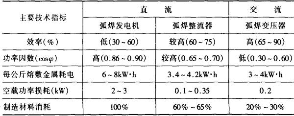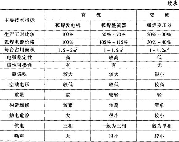 | 释义 | 弧焊电源类型的选择 1.交直流电源选择 根据不同焊接方法的工艺要求和经济效益,确定选用交流或直流电源。由于交流弧焊电源结构简单、效率高、成本低、使用可靠、易于维护等一系列优点。所以在能满足工艺要求的情况下,为提高经济效益,应尽量优先考虑选用。直流、交流弧焊电源的优缺点比较见表11-29。 表11-29 交、直流弧焊电源优缺点比较