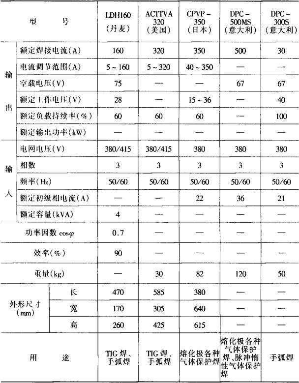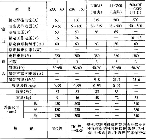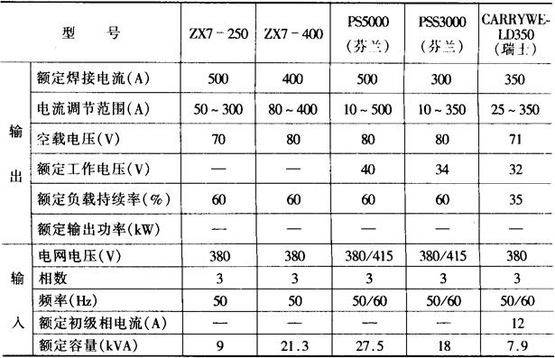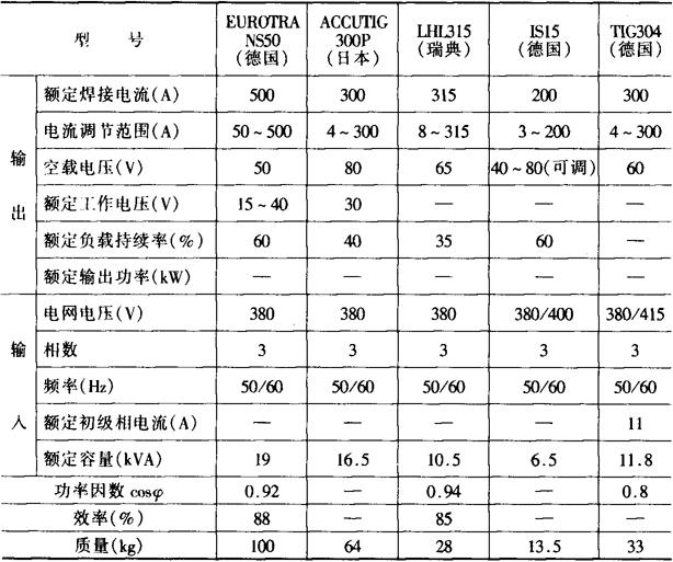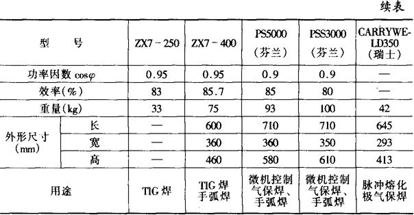 2.晶体管弧焊逆变器 表11-23 晶体管弧焊逆变器技术数据