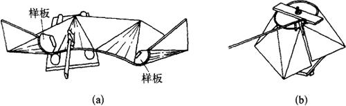图6-22 弯制圆方接头 (a)打圆弧;(b)工件组装 |