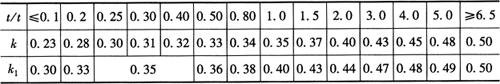 图6-69 圆弧和折角弯板的中性层展开 a.中性层确定 b.展开长度计算 c.折角弯板展开 板料弯曲中性层的位置(图6-69a),与其相对弯曲半径r/t有关,当r/t>5时,中性层位于板厚的1/2处,即板的中心层就是板的中性层,中性层半径R=r+0.5t;当r/t≤5时,中性层位置将向弯曲中心移动,则中性层半径R由下式计算: R=r+kt 式中 R——中性层半径(mm); r——弯板内弧半径(mm); t——板料厚度(mm); k——中性层位置系数,如表6-4所示。 表6-4 中性层位置系数k、k1值