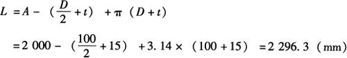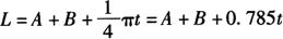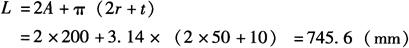 3.腰圆环的中性层展开 图6-71b为腰圆环构件。已知其A=200mm,r=50mm,t=10mm,则其展开长度的计算公式为