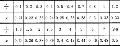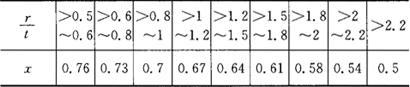 表1.2-51 卷圆时中性层位移系数x值