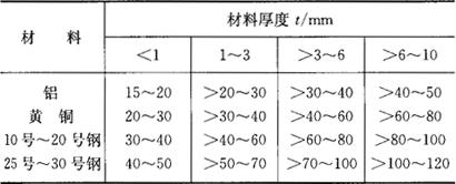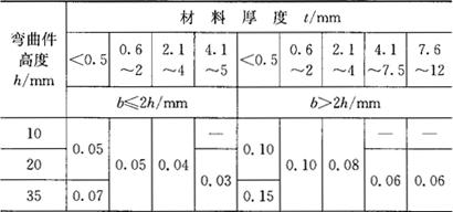 注:表中h、b、t单位为mm。 (五)弯曲件变形程度的计算 弯曲件的变形程度用弯曲半径r(或相对弯曲半径 其中最小弯曲半径: