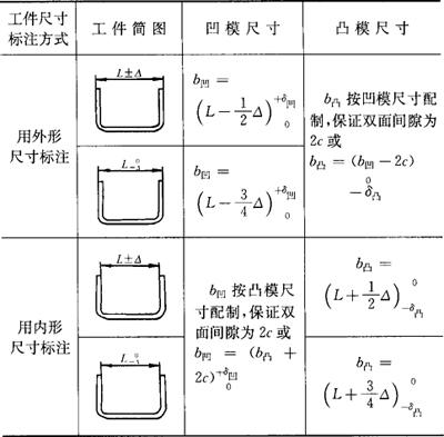 式中 ψmax——断面收缩率的最大值; t——材料厚度(mm)。 (六)弯曲模凸、凹模工作尺寸的计算 (1)凸、凹模宽度尺寸计算见表1.2-53 表1.2-53 弯曲凸、凹模工作尺寸计算