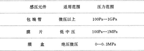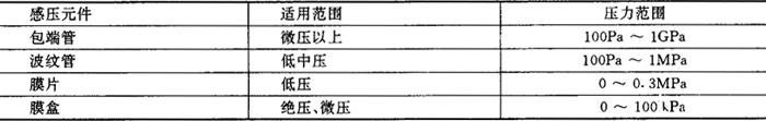 表4.8-1 各种感压元件的压力范围