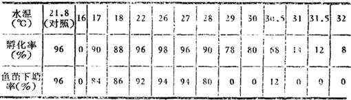 表2-18 鲢鱼卵在不同温度时的孵化率与鱼苗下塘率