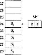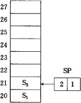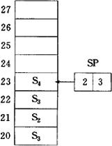 (c)弹出S5数据后 图1.2.2-2 堆栈的推入与弹出 堆栈的实现方式有硬件堆栈和软件堆栈两种。 (1)硬件堆栈 硬件堆栈由CPU内部寄存器构成,其优点是访问寄存器的速度较快,但由寄存器数量的限制,硬件堆栈的深度是很有限的。 (2)软件堆栈 软件堆栈是在随机存取存储器RAM中开辟一个区域作为堆栈,因此软件:的深度几乎不受限制。目前微处理器中一般都采用软件堆栈。软件堆栈的缺点是访问存储器间比硬件堆栈访问寄存器的时间长。 |