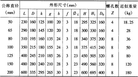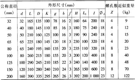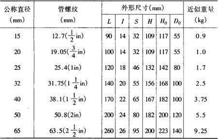 (2)截止阀:微灌机械中常用截止阀的规格尺寸见表8-45和表8-46。 表8-45 J11型内螺纹直通式截止阀规格