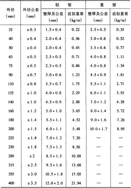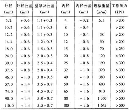 表8-51 高压聚乙烯管道规格标准(行业标准)