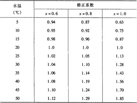 5.灌水器及其水力性能 (1)微管:微管的主要技术参数有微管长度、微管直径、微管扬程、微管流量等,为了简化计算,可以绘出不同微管直径时的水头-长度曲线(h-L曲线)。设计微灌时,可根据已确定的微管流量,选用相应的图号,按已知的工作水头和微管直径,直接查图确定所需的微管长度。 由于微管中的水流流态为光滑层流,水温的变化对出流量影响很大,因此需要对微管的出流量进行温度修正,其修正系数见表8-54。 表8-54 温度对灌水器流量影响的修正系数