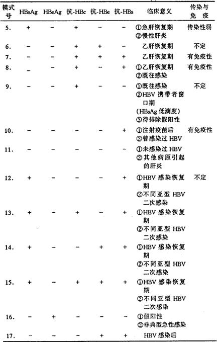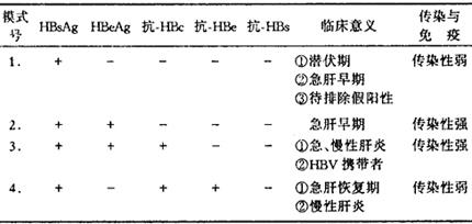 感染HBV后常见血清学标志物的临床意义 (“两对半”检查反应模式的临床意义)