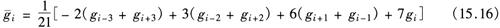 某一点的平滑值是在剖面上以该点为中心取奇数点的算术平均值。由m=1、2、3……可分别得3、5、7……点平滑公式。 二次曲线平滑公式:包括五点和七点平滑公式。 五点平滑公式为: