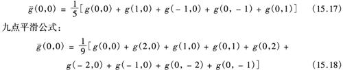 (4)平面异常的平滑公式:线性平滑公式(见前)。 五点平滑公式: