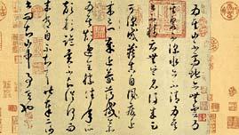 前人评其狂草继承张旭,而有所发展,谓“以狂继颠”,并称“颠张醉素”,对后世影响很大。存世书迹有《自叙帖》、《苦笋帖》、《论书帖》等。